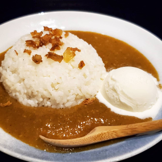 辛いモノが苦手なスタッフ用にバニラアイスをトッピング‼️