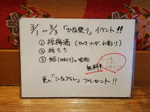 日常酒飯事わこうの渋川です(^-^)/本日より3日間ひな祭りイベントを開催✨ご来店の皆様に、桜もち、桜梅...